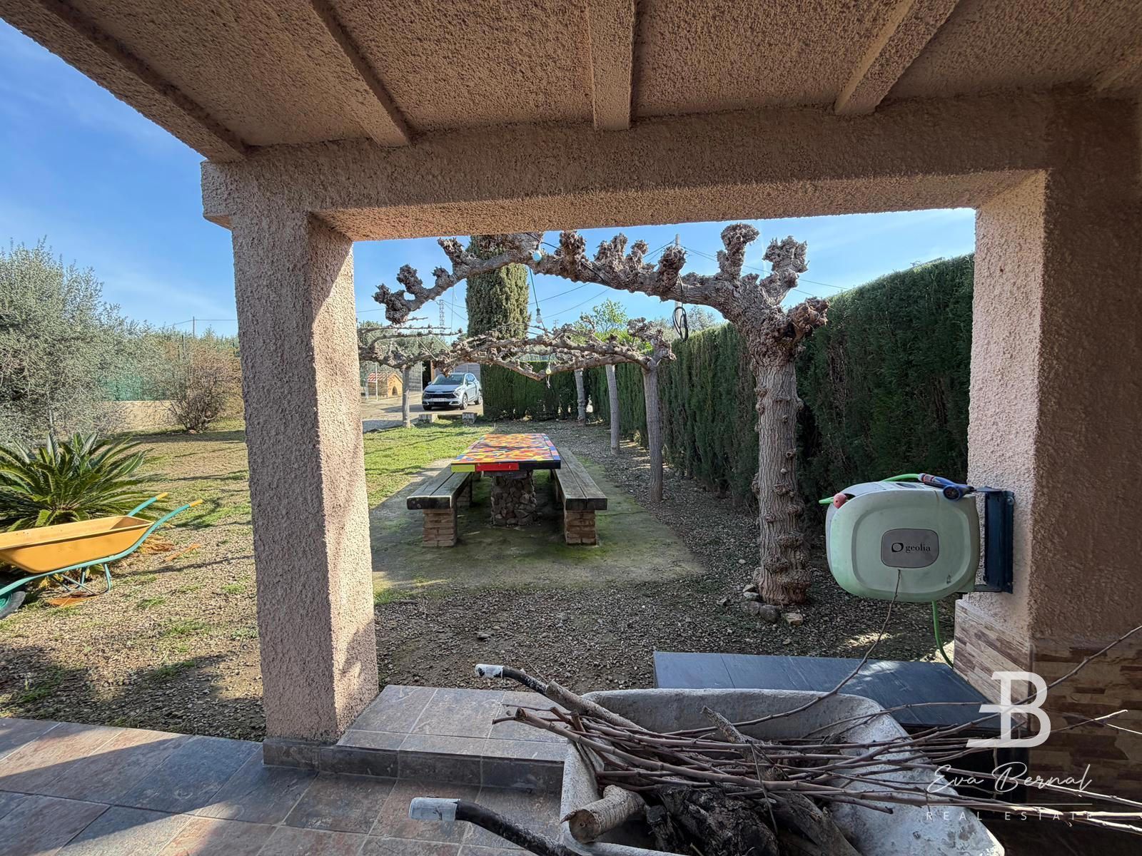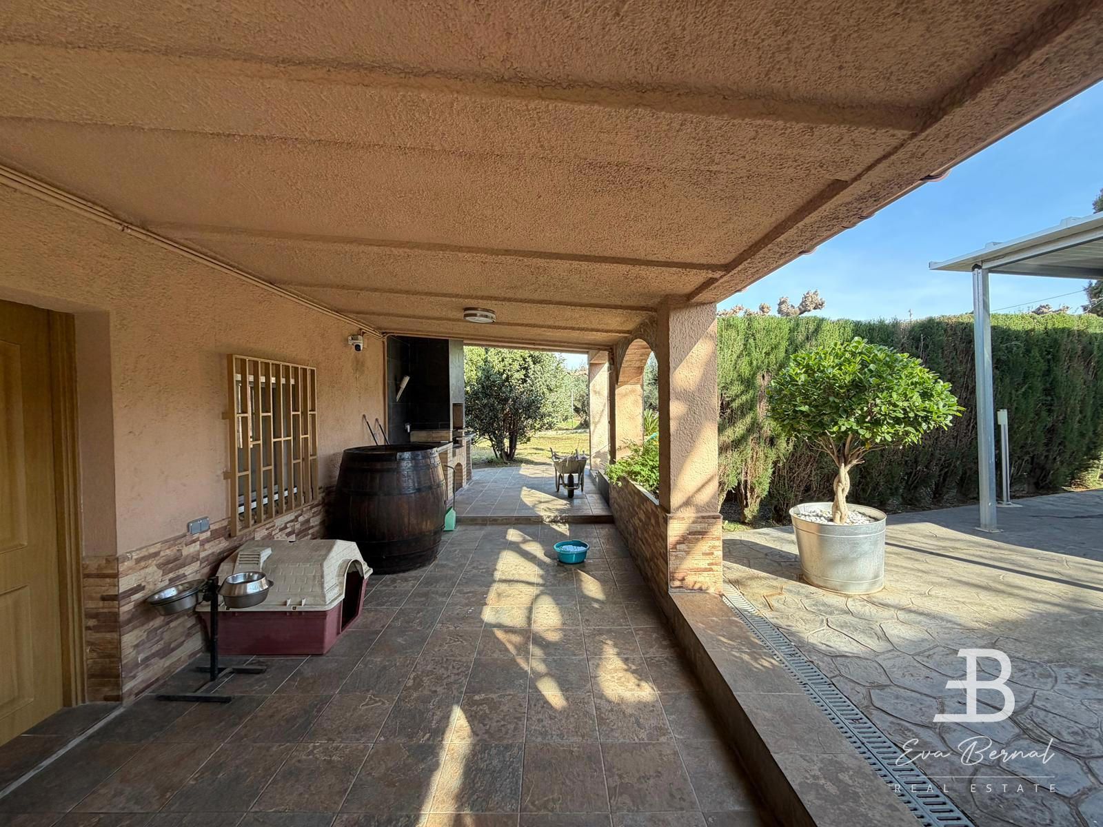 En el exterior, la propiedad invita a disfrutar del estilo de vida mediterráneo: un encantador porche con zona de barbacoa y espacio para comedor exterior, perfecto para largas sobremesas, desayunos al sol o veladas con amigos. La piscina añade un valor excepcional, convirtiéndose en el lugar ideal para relajarse en los meses más cálidos.