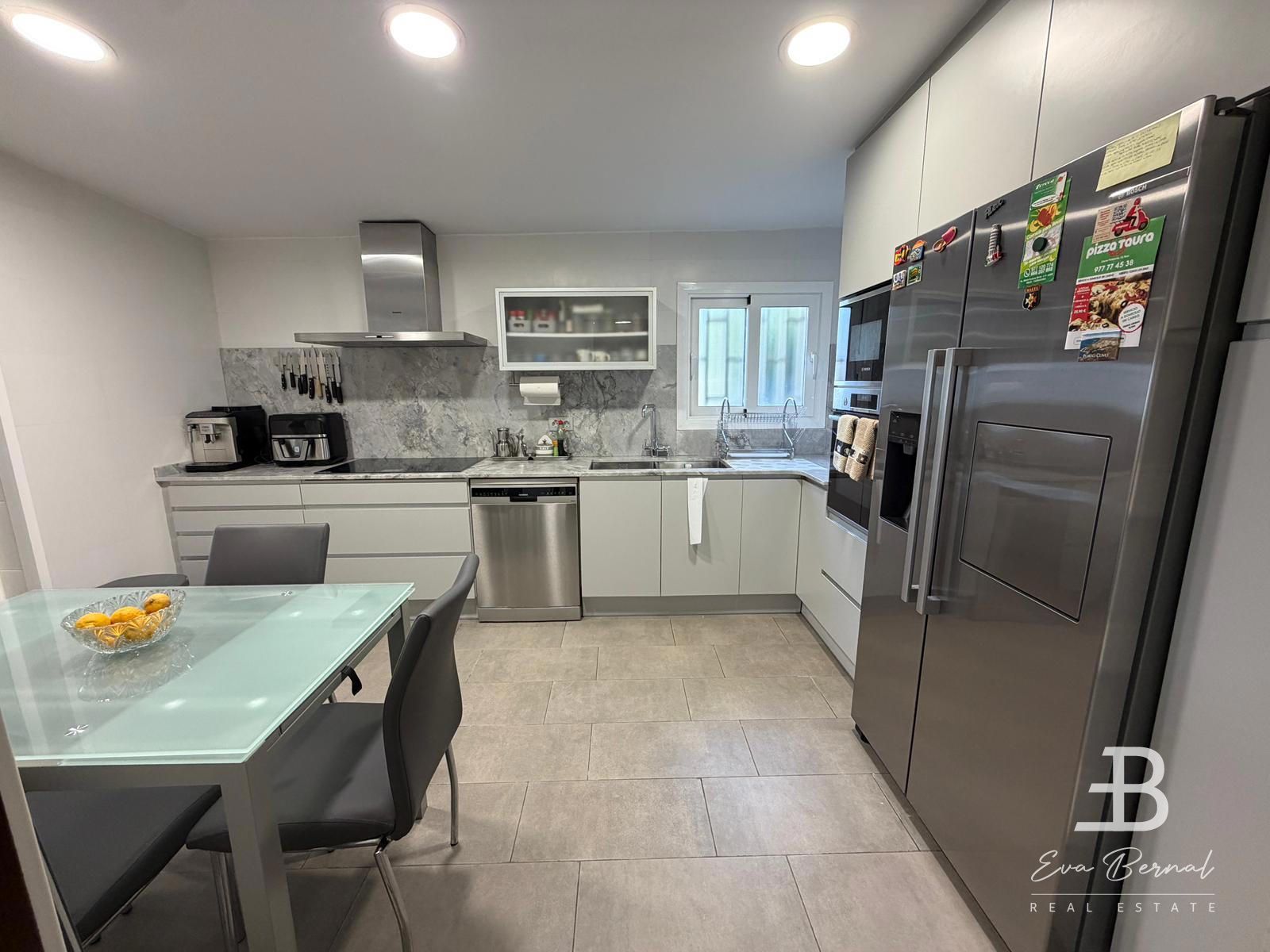 La vivienda cuenta con 3 habitaciones, destacando la suite principal con baño privado, además de un segundo baño completo. El espacioso salón comedor con chimenea crea un ambiente cálido y acogedor, ideal para momentos en familia. La cocina, amplia y totalmente equipada, incluye práctica despensa y zona de almacenamiento.